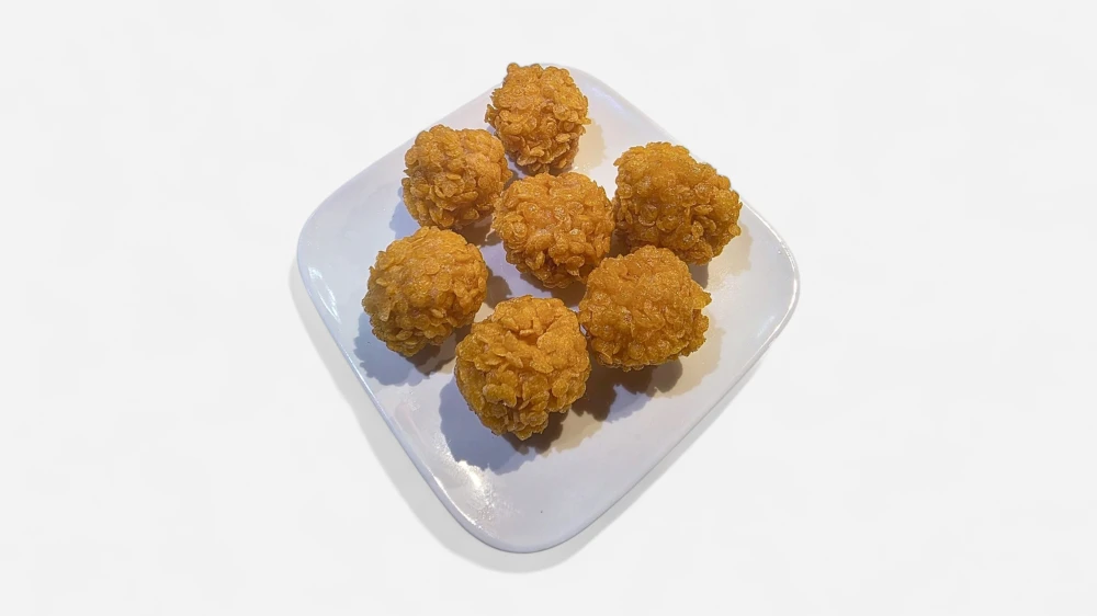 7 Stück Knusprige Frittierte garnelen bällchen mit Cornflakes Panade und süss Sauer sosse